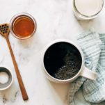 Oatmilk Honey Latte – a delicious homemade morning treat! Steaming hot, rich, and dark coffee that’s satisfyingly creamy, barely sweet, and warm-spiced.