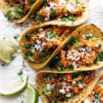 Chicken Tinga Tacos – the only chicken tinga tacos recipe you will ever need! Spicy, saucy, simple, and so fresh. Recipe is posted with permission from The Minimalist Kitchen (affiliate link) cookbook (although I’ve taken the liberty of adding “The Best” as a necessary recipe title prefix).